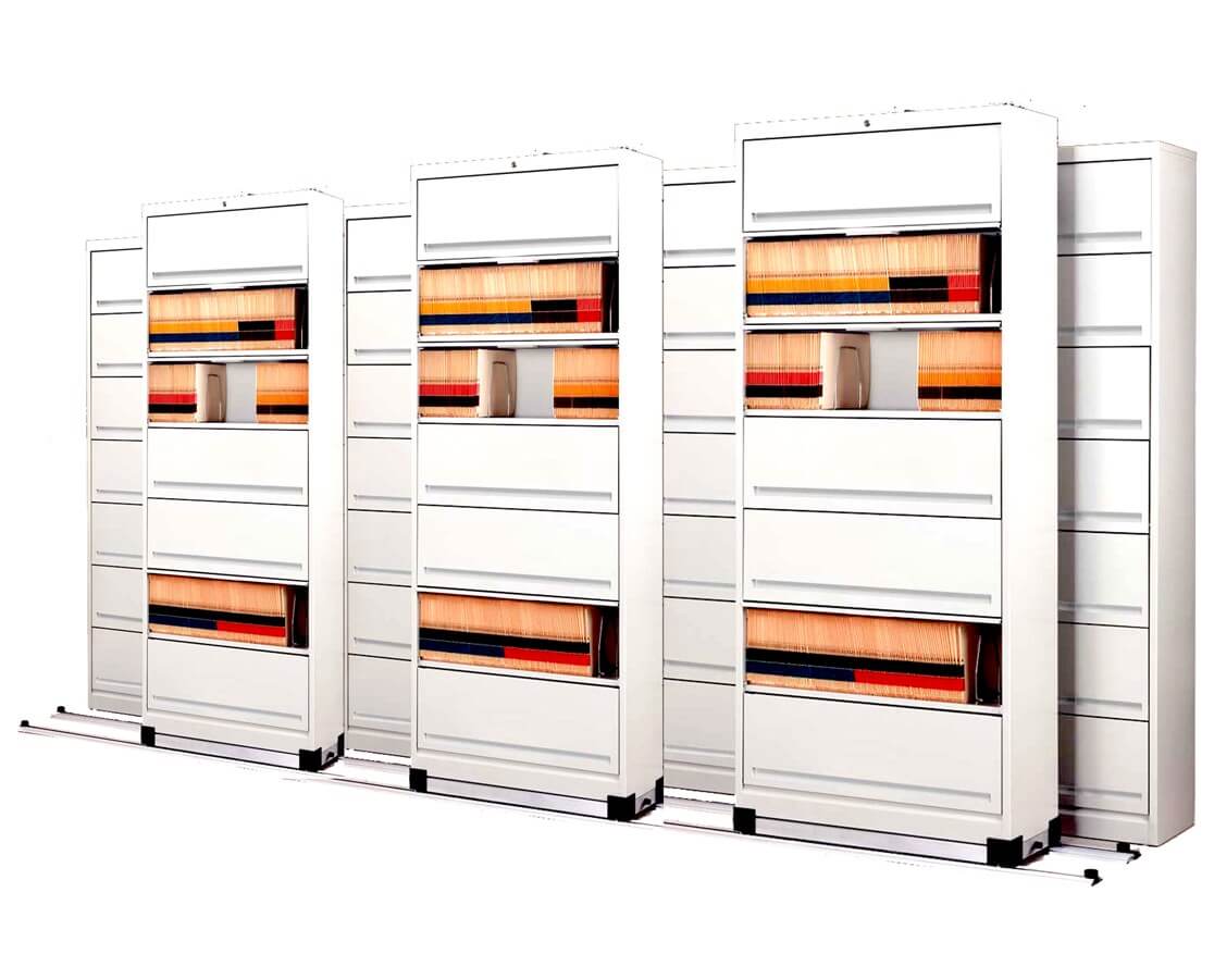 Create more space by compacting storage and eliminating fixed aisles. This, in turn, creates a single aisle system that increases storage capacity by as much as 80% (over traditional configuration).